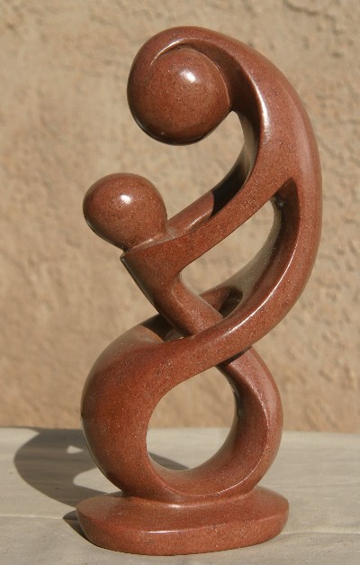 A lovely carving of a parent and child. This piece is carved from Mondoro stone.